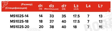 | Размер, спецификация | d1, мм | d3, мм | d7, мм | L3, мм | L4, мм | L7, мм |