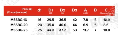 | MS6BG-16 | 16 | 29.5 | 36.5 | 42 | 7.8 | 5 | 10.0 |